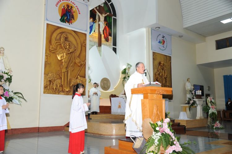 Thánh lễ trọng thể do cha quản xứ Giuse Trần Thế Thành chủ tế, cha phó Augustino cùng đồng tế,