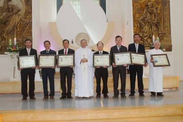 III. Trao bằng tưởng lục cho cựu quý chức ban thường vụ hội đồng giáo xứ đã mãn nhiệm kỳ 2012-2016. Đây là nghi thức biểu hiện lòng biết ơn của giáo phận, của giáo xứ gởi tới quý ông đã công hiến phục vụ cho giáo xứ nhiệm kỳ đã qua.