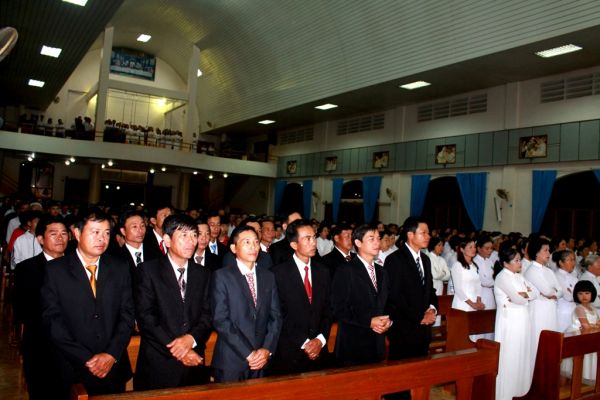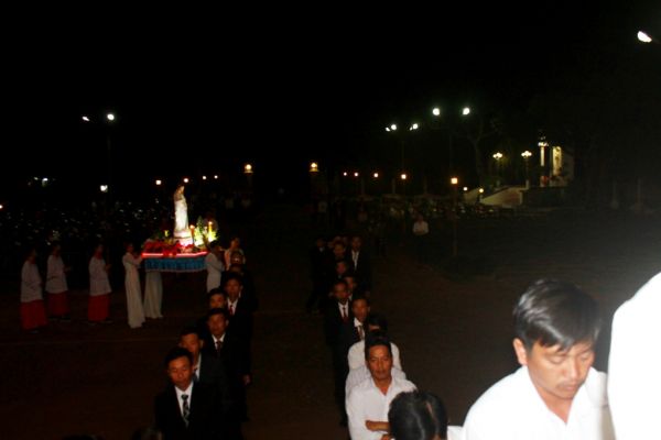 Đoàn rước kiệu trọng thể thánh cả Giuse bạn Đức Trinh Nữ Maria từ hội trường tiến vào nhà thờ vào lúc 4 giờ 45 phút rạng sáng ngày 19.03.2018, đã bắt đầu cho thánh lễ trọng thể mừng kính Thánh Giuse, quan thầy của Giáo hội Việt Nam, quan thầy của giáo xứ và của cha quản xứ.