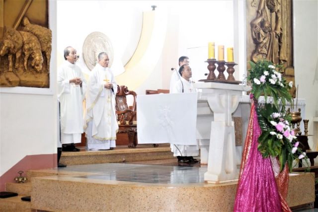 Chủ tế thánh lễ do cha Giuse Nguyễn Hoàng Thy, SDB. Cùng đồng tế có cha quản xứ Giuse Trần Thế Thành, cha Giuse Hồ Quang Hân,SDB và cha GB Nguyễn Văn Huân, SVD.