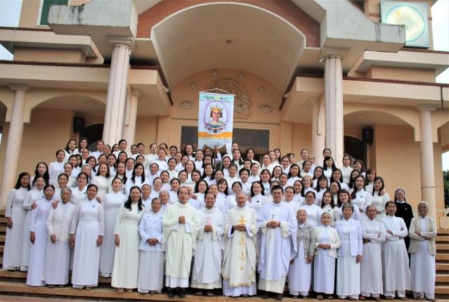 Sau thánh lễ qúy mẹ chị đã ghi hình lưu niệm cùng với quý cha đồng tế và chuẩn bị cho chương trình sinh hoạt bên nhau ngày vui hôm nay tại sân nhà thờ giáo xứ.