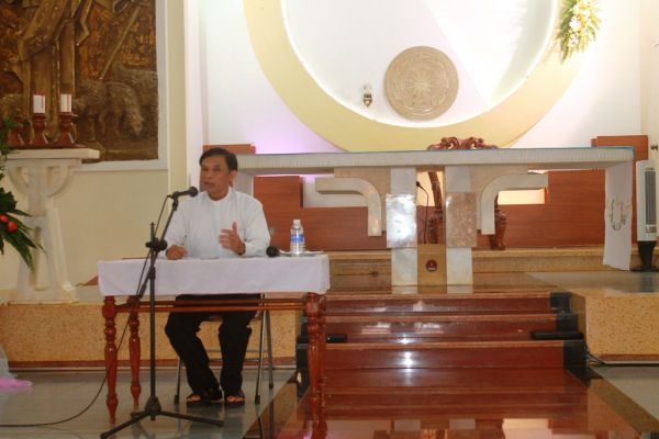 Cha Giuse Nguyễn Văn Khánh quản xứ Hòa An, quản hạt Gia Nghĩa giúp các bà mẹ tĩnh tâm với chủ đề: "Gia Đình Tổ Ấm Yêu Thương Nơi Cần Có Sự Chung Tay Vun Xén" chủ đề nầy được sử dụng xuyên suốt trong toàn bộ chương trình mừng thánh lễ Monica quan thầy.
