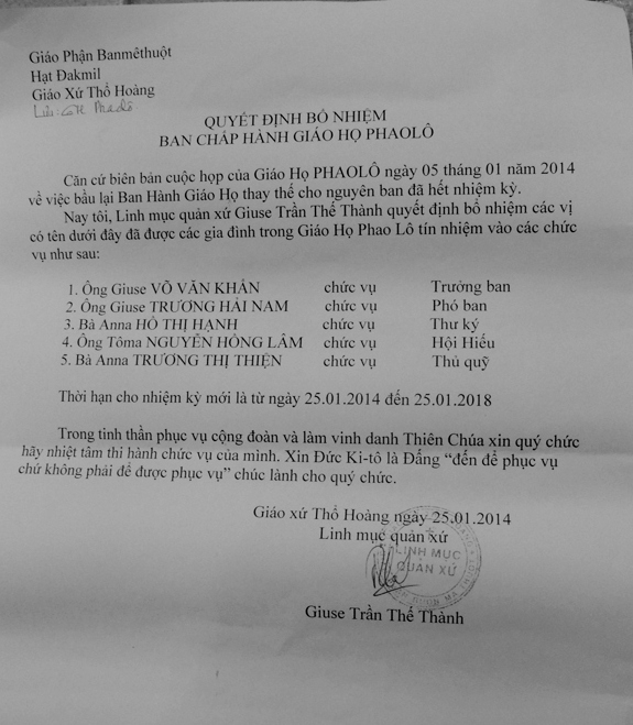5 vị nầy sẽ tuyên hứa nhận nhiệm vụ cộng tác với cha quản xứ xây dựng giáo họ với nhiệm kỳ 4 năm: 2014-2018.
