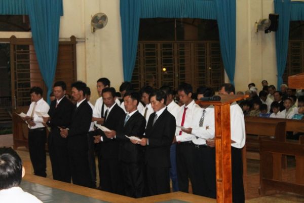 Sau bài giảng, năm vị ban hành giáo mới cùng 10 vị phụ trách 5 liên gia đứng lên trước cung thánh nghe ông Giuse Trần Hữu Linh, chủ tịch ủy ban thường vụ hội đồng giáo xứ đọc quyết định bổ nhiệm của cha quản xứ, tiếp đến là phần tuyên thệ nhận trách nhiệm của tân ban với nhiệm kỳ 4 năm.