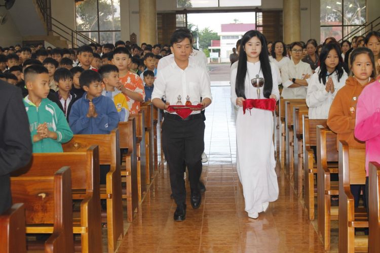 Lúc 7 giờ 30, ngày 27 sáng thứ năm, cha quản xứ và cha phó giải tội cho quý phụ huynh có con em chuẩn bị rước lễ lần đầu.