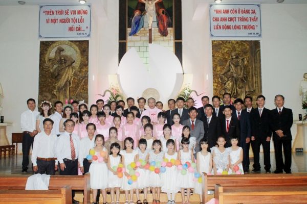 Kết thúc thánh lễ vào lúc 21 giờ 15, cha quản xứ đã chúc mừng lễ Giáng Sinh đến toàn thể giáo dân, đặc biệt ca đoàn Bêlem đã chọn Chúa Hài Đồng làm bổn mạng của mình, đồng thời ghi hình lưu niệm cùng với Thường vụ hội đồng giáo xứ, Ban hành giáo các giáo họ, các em đội múa……