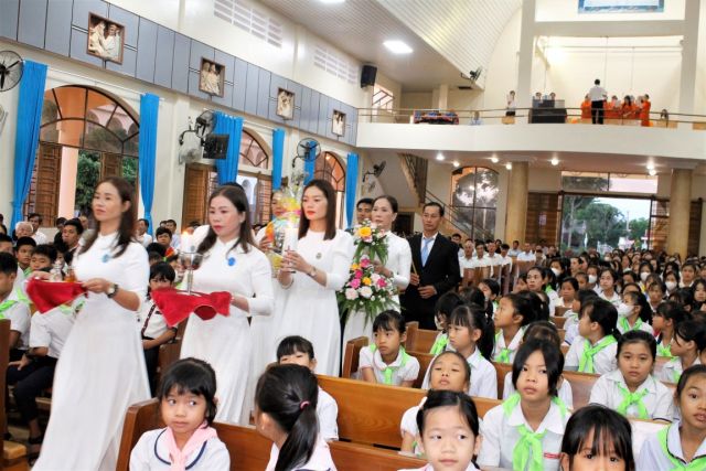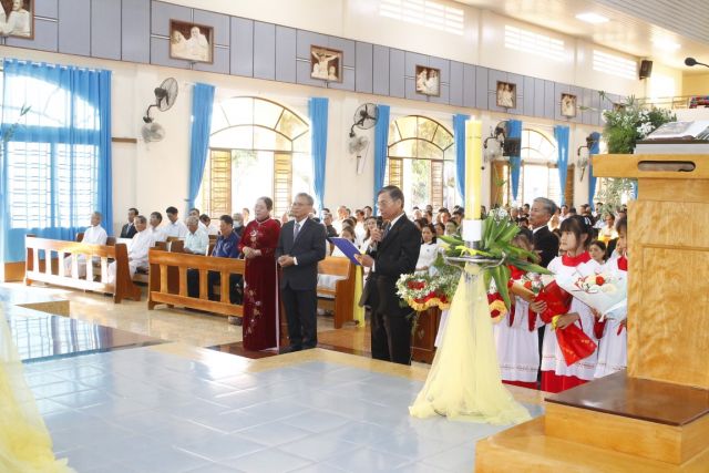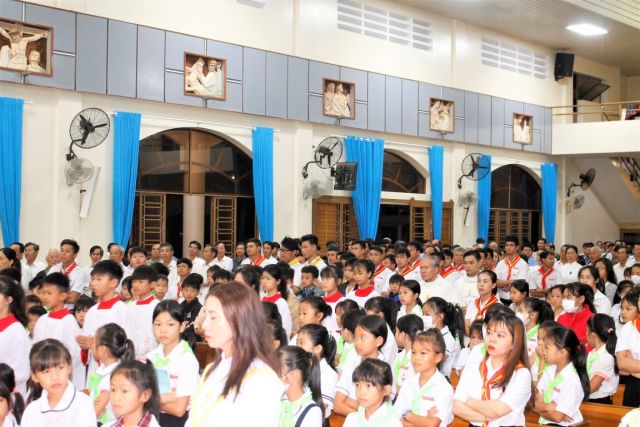 Thánh lễ rất đông các giới, đặc biệt giới trẻ, các em thiếu nhi, các bà mẹ và giáo dân quy tụ về nhà thờ giáo xứ hân hoan mừng lễ.