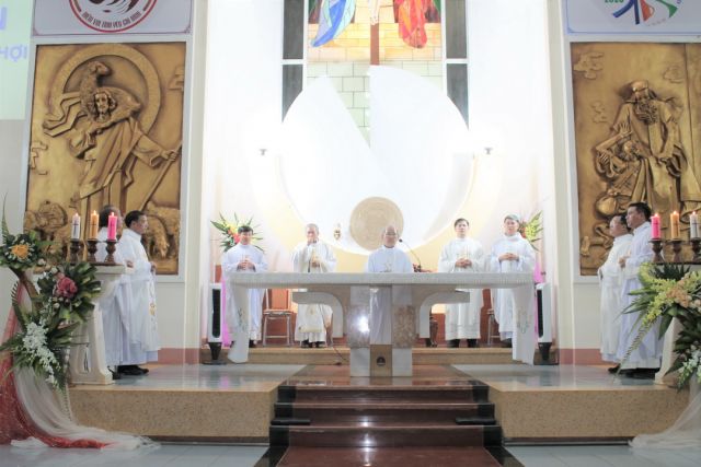 Cùng đồng tế có cha quản xứ Giuse Trần Thế Thành, cha Matthêu Trần Hữu Hải, O.C, Cha Giuse Trần Thanh Hải, SVD, cha GB Nguyễn Văn Huân, SVD, cha GB Nguyễn Kim Hường, SVD, cha Giuse Hồ Quang Hân, SDB, cha Giuse Trần Hữu Hoan và cha Antôn Nguyễn Thành Chương, OP.
