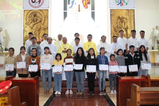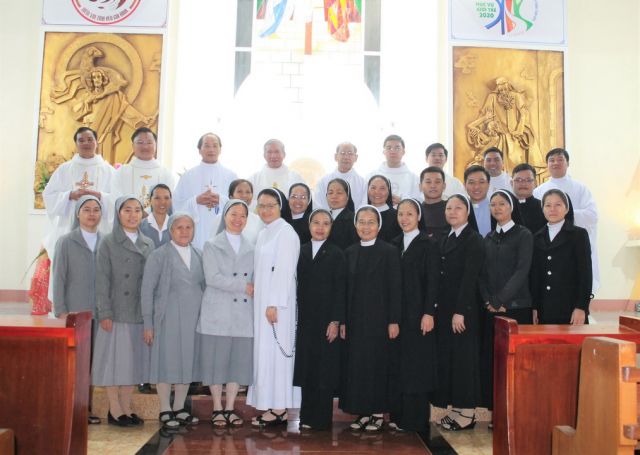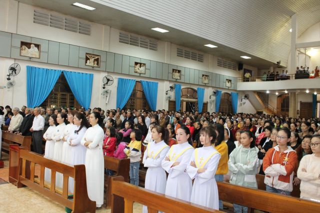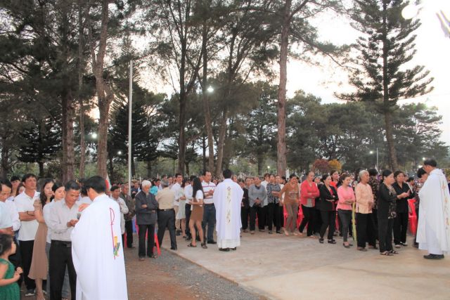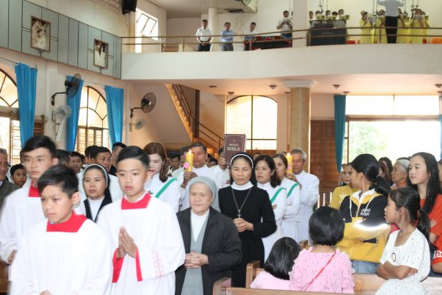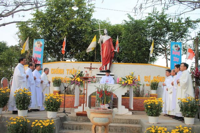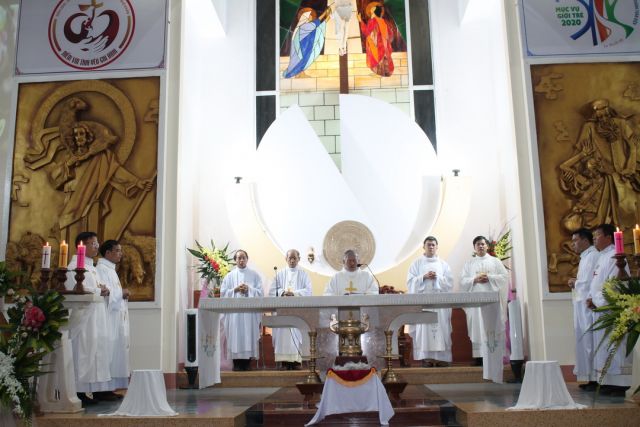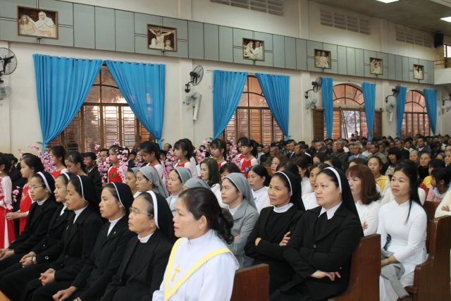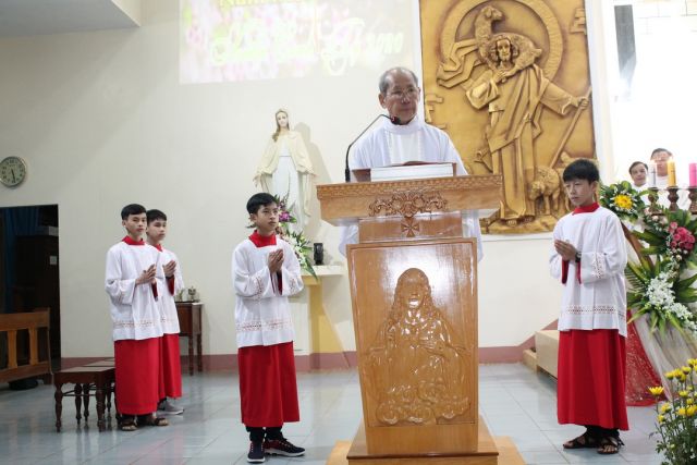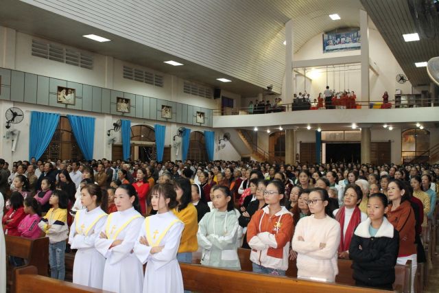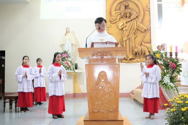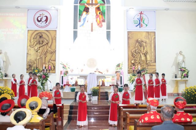 Cùng đồng tế có cha quản xứ cùng quý cha đồng hương về ăn tết. Thánh lễ hôm nay được trao cho tu sỹ nam nữ, học sinh sinh viên, những người con em làm ăn xa tổ chức thánh lễ.