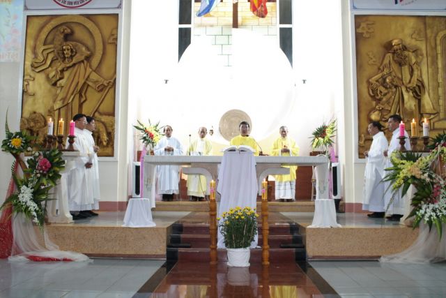 Thánh lễ do cha GB Nguyễn Kim Hường,SVD chủ sự, cùng đồng tế có cha quản xứ Giuse Trần Thế Thành và quý cha đồng hương.