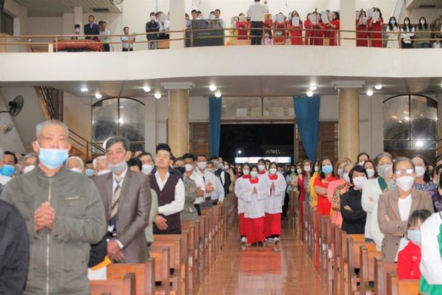 Lúc 5 giờ 30 thứ ba ngày mồng 1 tết Nhâm Dần, cha quản xứ Giuse Trần Thế Thành đã long trọng cử hành thánh lễ Minh Niên cầu bình an năm mới.