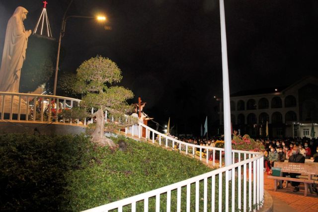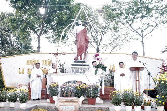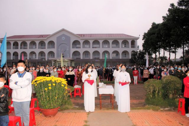 Lúc 5 giờ 30 sáng mồng 3 tết, Giáo xứ Thổ Hoàng tham dự thánh lễ trọng thể tại đài Đức Mẹ