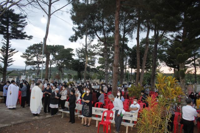 Lúc 16 giờ 45 cộng đoàn giáo xứ quy tụ về nghĩa trang giáo xứ hiệp dâng thánh lễ cầu nguyện cho cha mẹ ông bà tổ tiên
