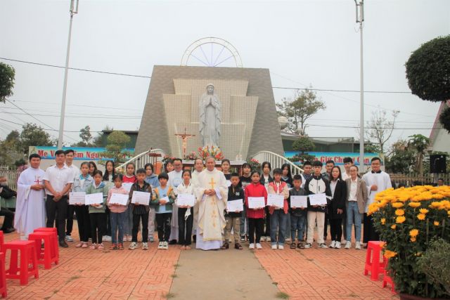 Sau thánh lễ, Hội Đồng Hương phát 22 phần học bổng cho 22 e hiếu học, mỗi phần trị giá 1500000 đồng