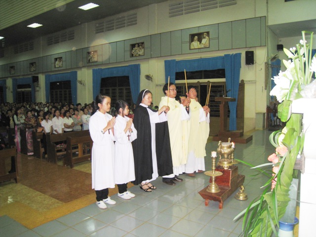 Thánh lễ tạ ơn sáng hôm nay do cha quản xứ Đa Minh Phạm Sỹ Hiện làm chủ tế và cha G.B. Nguyễn Kim Hướng SVD cùng đồng tế, Thánh Lễ đã tập trung khá đông tu sỹ nam nữ, giáo dân trong Giáo xứ cùng với bạn bè và những người anh em bà con phương xa về tham dự.
