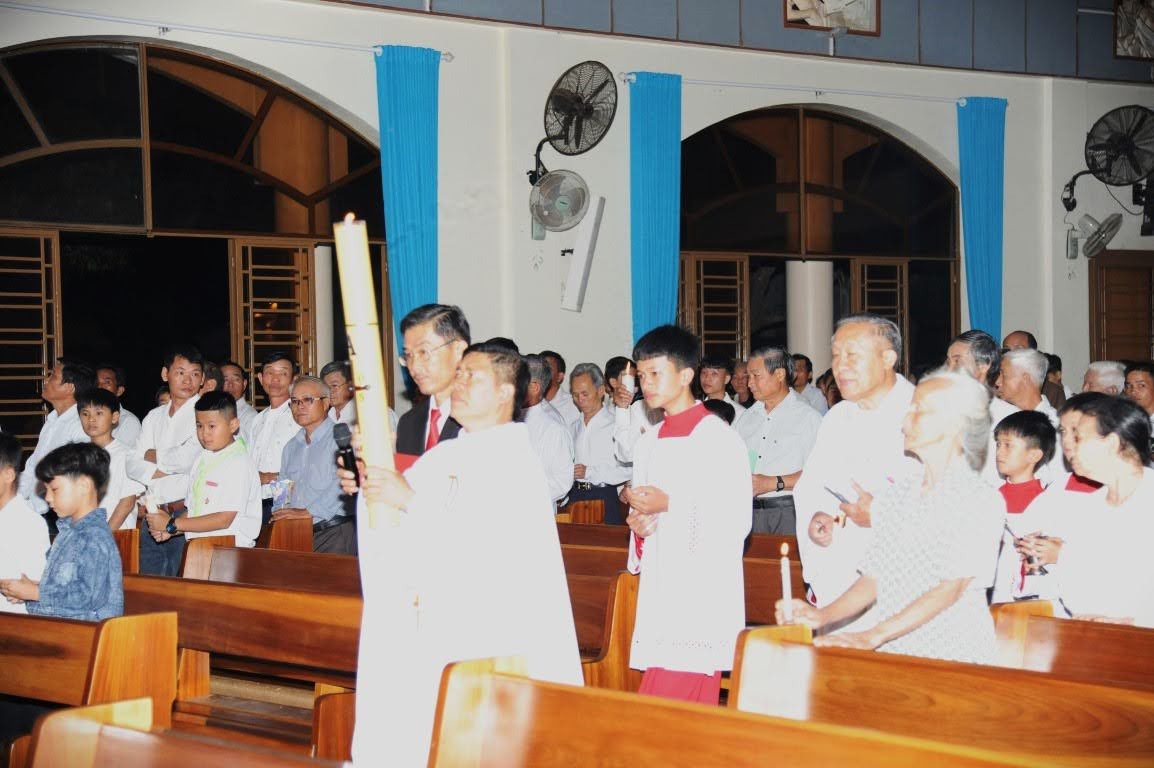 Vào lúc 19 giờ ngày 19-4-2025, cha quản xứ Phaolô Dương Anh Thơ long trọng dâng Thánh lễ Vọng Phục Sinh tại nhà thờ Giáo xứ. Đồng tế với ngài có cha Giuse Nguyễn Xuân Tĩnh CM.