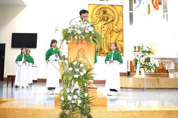 Phần giảng lễ, qua sứ điệp Tin Mừng hôm nay: “Hãy trả cho Xêda những thứ thuộc về Xêda, và cho Thiên Chúa những gì thuộc về Thiên Chúa”. Cha Antôn đã mời gọi cộng đoàn hãy trả cho cho Thiên Chúa đó là sự ca ngợi , lòng biết ơn, tâm tình phục vụ, và tất cả vinh quang đều quy về Thiên Chúa, mọi sự đều đến từ bàn tay Thiên Chúa nên phải tôn thờ Thiên Chúa trên hết.