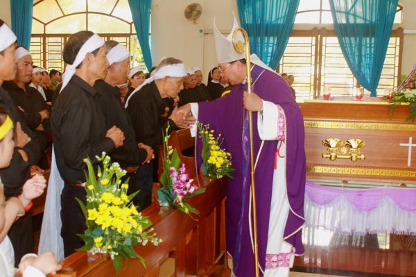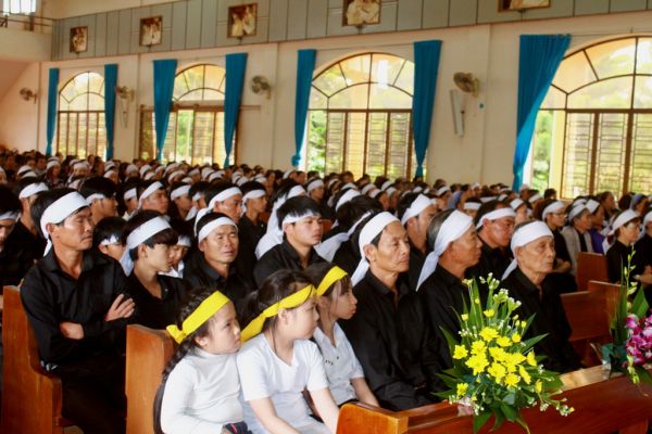 Trước khi vào thánh lễ, cha tổng đại diện Stêphanô Nguyễn Văn Đậu thay mặt toàn giáo phận gởi lời chia buồn sâu sắc tới cha Giuse Trương Văn Minh cùng toàn thể tang quyến:” … Chúng con tin rằng, bà cố Maria đã trung tín với Chúa đến hơi thở cuối cùng, đó chính là bà cố đã hoàn tất cuộc đời tử đạo âm thầm, tử đạo trên con đường mến Chúa và yêu người, gần nhất chính là từ chồng và các con…….”