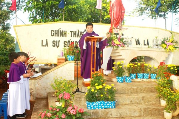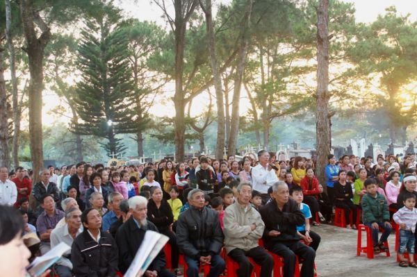 Cha GB Nguyễn Kim Hướng SVD chủ tế, cùng đồng tế có cha quản xứ Giuse Trần Thế Thành với sự hiệp thông của đông đảo bà con giáo dân trong và ngoài giáo xứ họp về đây thăm viếng và hiệp thông với thân nhân của mình yên nghỉ trong nghĩa trang nầy.