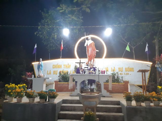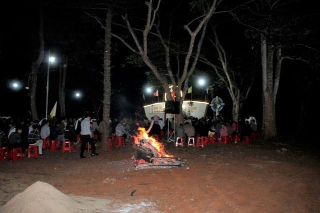 Thánh lễ kết thúc lúc 20 giờ, mọi người hân hoan ra về, các đống lửa vẫn cháy nồng ánh lửa nồng ấm yêu thương, tình Chúa tình người.