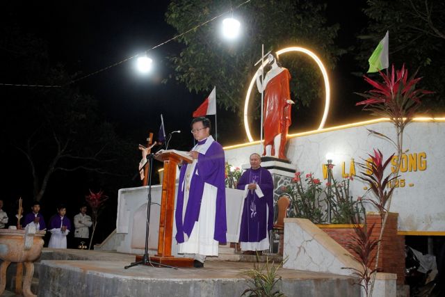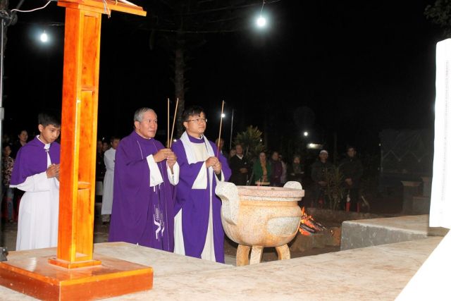 Ba đống lửa cháy bùng lên, trước khi vào thánh lễ, cha quản xứ đã giớ thiệu thông điệp từ 3 đống lửa gởi tơi cộng đoàn: