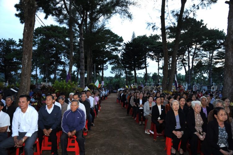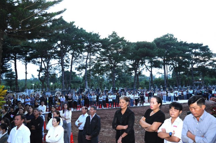 Kết thúc bài giảng, cha chủ tế nói với cộng đoàn: “Bên phần mộ người đã khuất,chúng ta không chỉ đươc nhắc nhớ cầu nguyện cho những người đã qua đời, nhưng còn nhắc ta nhớ cầu nguyện cho những người cha người mẹ mât con, cầu nguyện cho nhưng người mất người thân đồng thời nhắc nhớ chúng ta sống yêu thương, cư xử tốt với những người đang sống bên cạnh mình”.