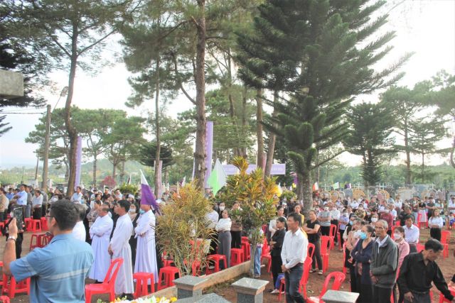 Cha Giuse mời gọi mọi người cùng hướng về những người đang an giấc trên đất thánh của Giáo xứ, nơi đây là tổ tiên, ông bà, cha mẹ, anh chị em và bằng hữu, ân thân nhân, những người có công xây dựng nên Giáo xứ thân thương của chúng ta đã an nghỉ đợi chờ ngày Đức Kitô trở lại trong vinh quang, được kết hợp hồn xác sống lại với Chúa Phục Sinh, cùng với Người hưởng phúc trường sinh vĩnh cửu.