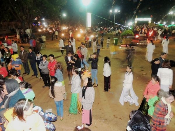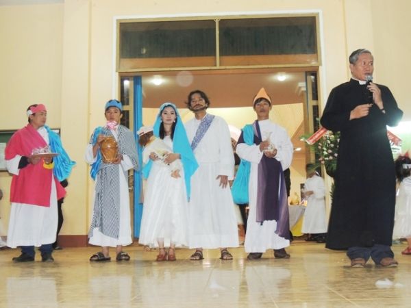 Đúng 19 giờ tối 24, đã có khoảng 3000 giáo dân của giáo xứ và các xứ lân cận như Xuân Lộc, Đức Lệ và khách thập phương tuôn về khuôn viên nhà thờ tham dự giờ diễn nguyện canh thức chờ Chúa đến.