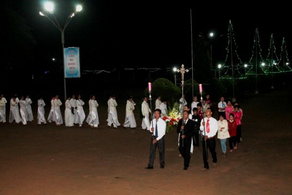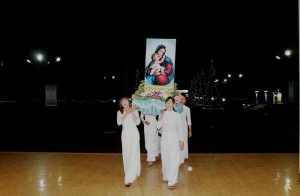 Thánh lễ bắt đầu bằng đoàn rước linh ảnh Mẹ Thiên Chúa do cha Giuse chủ sự cùng với giáo dân giáo họ Maria, ban thường vụ hội đồng giáo xứ, ban hành giáo các giáo họ từ hội trường nhà xứ tiến vào nhà thờ.