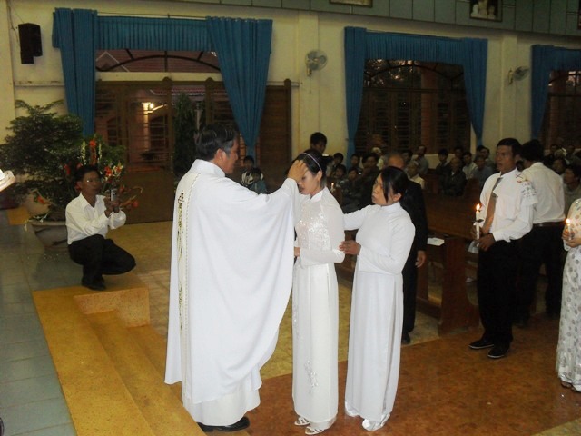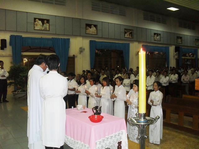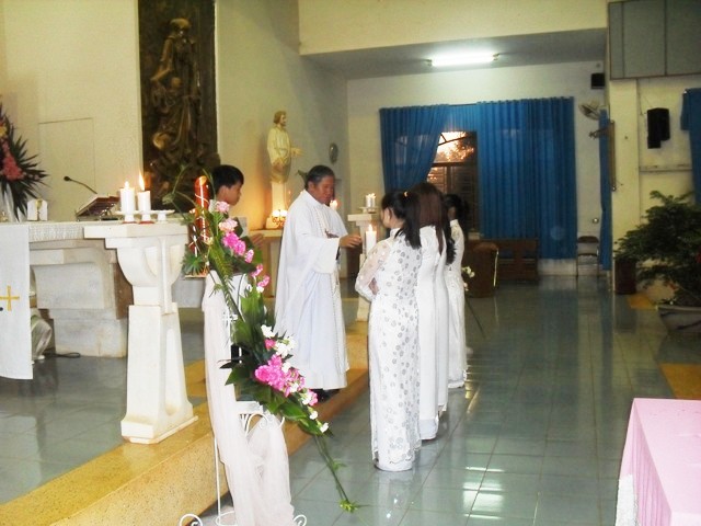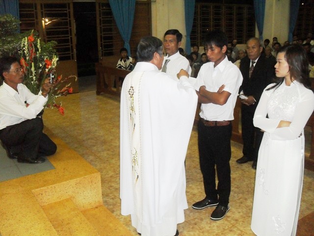 Đúng 5 giờ, trước cửa tiền đường nghi thức tiếp nhận long trọng và nghiêm trang được tiến hành, sau khi cha chủ tế Giu Se đã thẩm vấn các thỉnh nhân và người đỡ đầu, đoàn rước hân hoan và nghiêm trang tiến vào nhà thờ tham dự bữa tiệc Lời Chúa…