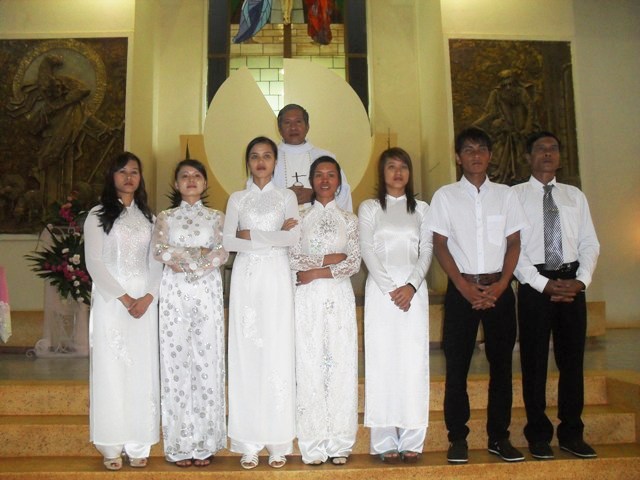 Sau Thánh Lễ cha chủ tế đã ghi hình lưu niệm với các dự tòng, với những người đỡ đầu, cũng như với ân nhân thân nhân và bằng hữu của các anh chị dự tòng đã tới chung chia niềm vui trong Thánh lễ gia nhập Ki Tô Giáo trong ngày hôm nay.