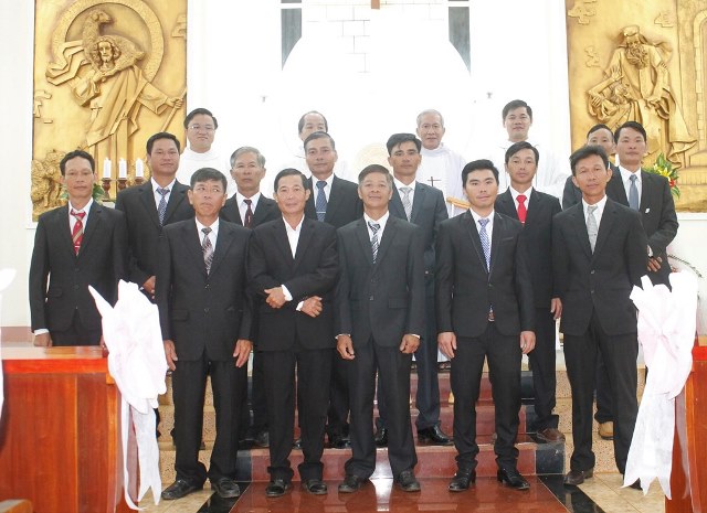 Sau phép lành cuối lễ, quý cha đồng tế đã ghi hình lưu niệm với thường vụ hội đồng giáo xứ và ban hành giáo giáo họ Giuse thợ.