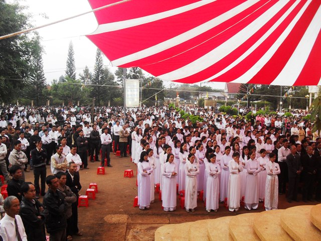 Giáo dân từ 4 giáo họ của Giáo xứ và có khá đồng giáo dân ở lân cận cùng với một số nhân công hái cà phê từ mọi nẻo đường đã tấp nập hối hả tuôn về khuôn viên nhà thờ để kịp giờ khai mạc Năm Đức Tin.
