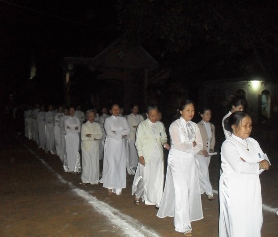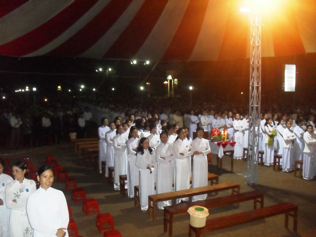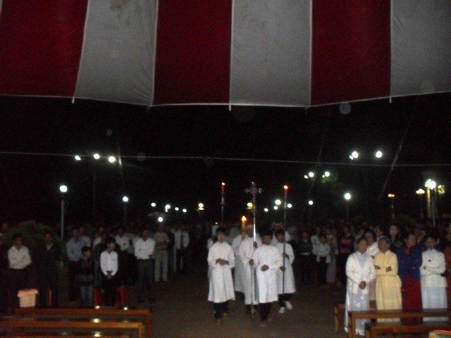 Đoàn người nghiêm trang tiến đi dưới ánh điện mờ khi trời chưa kịp sáng, giữa tiếng hát thiết tha của toàn thể cộng đoàn dân Chúa: “chúng con về nơi đây dâng ngàn tiếng ca, chúng con về nơi đây để tạ ơn Thiên Chúa…”đã thể hiện một sự hiệp thông kỳ lạ, không ồn ào náo nhiệt nhưng đoàn rước cùng với toàn thể cộng đoàn phụng vụ như được sống và tham dự vào cuộc rước biểu dương đức tin và được hòa mình vào hành trình đức tin của dân Chúa trên sa mạc, và như hình ảnh của tổ phụ Apraham, Thánh cả Giuse quan thầy của Giáo xứ là mẫu gường ngời sáng về hành trình sống đức tin của mình giữa sự thinh lặng và giữa bóng tối phủ vây.