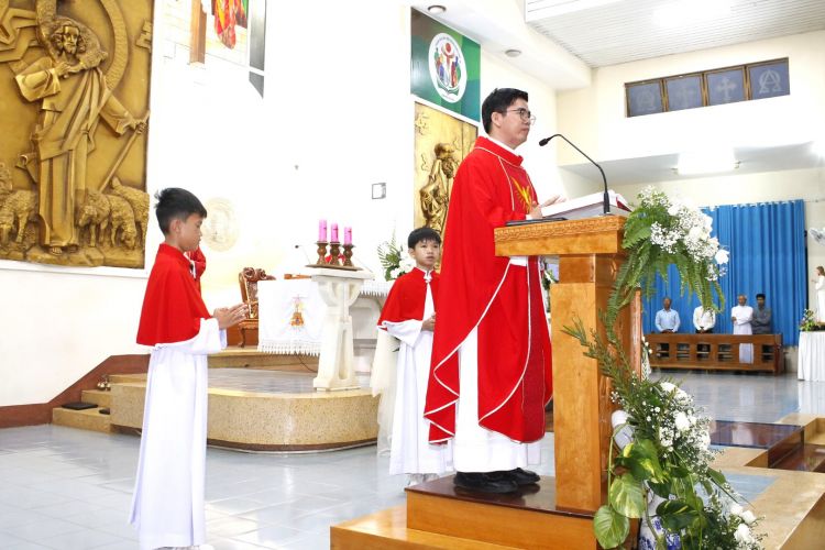 Cùng đồng tế có cha quản xứ Giuse Trần Thế Thành và cha phó Augustino Phan Minh Danh.