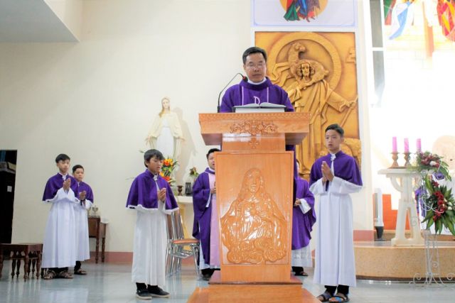 Sau lời chào hỏi và giới thiệu của cha quản xứ, cha chủ tế Giuse Trương Văn Minh đã mời gọi mọi người cùng hiệp thông với ngài dâng lời tạ ơn Thiên Chúa vì muôn hông ân Chúa đã tuôn đổ cho tất cả mọi người, đặc biệt cầu nguyện cho linh hồn bà cố Maria Nguyễn Thị Hồng.
