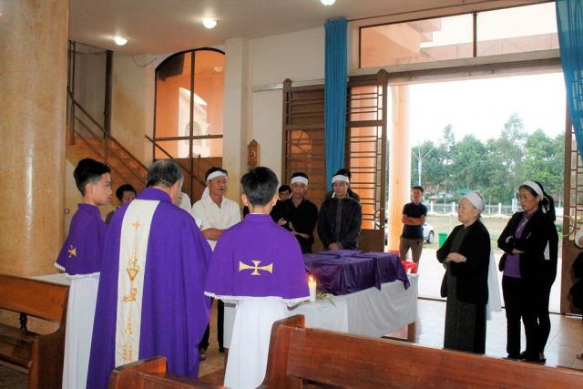 Trước lời nguyện kết lễ, cha quản xứ Giuse đã làm phép cho một số hài cốt từ miền Bắc được thân nhân quy tập về nghĩa trang giáo xứ để đoàn tụ và để dễ bề chăm sóc.