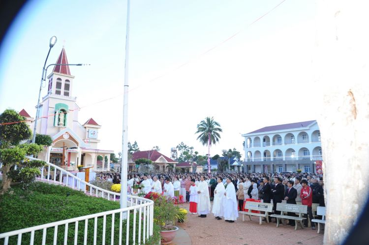 Lời đầu lễ của cha chủ tế GB. Nguyễn Kim Hường bắt đầu cho thánh lễ đồng tế trọng thể, giàu màu sắc linh thiêng giữa buổi sáng mai trước hừng đồng của ngày đầu năm mùng 3 tết tại Đài Đức Mẹ vào lúc 5 giờ 30 thứ sáu ngày 31 tháng 01 năm 2025.