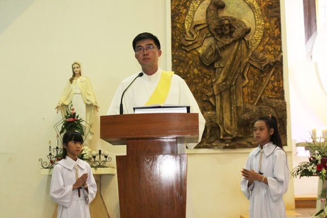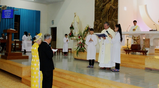Cha Giuse nói tiếp, như mọi người đã nhìn thấy, ơn Chúa đã hằng ở với gia đình ông bà cố Giuse Hồ Đức Thường ngoài con cái cháu chắt sống đời hôn nhân, còn có mặt hiện diện nơi đây là 2 người con đã sống đời dâng hiến: Thầy Phó Tế Giuse Hồ Quang Hân S.D.B và nữ tu Têrêxa Hồ Thị Kiều Oanh O.P.