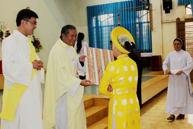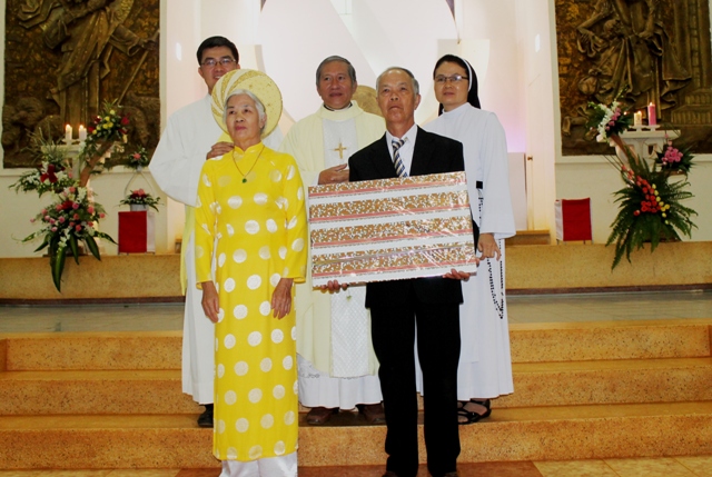 Kết thúc thánh lễ cha Giuse đã tặng quà cho đôi Kim Khánh Hôn Phối và sau đó ghi hình lưu niệm.