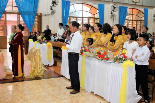 Tiếp đên cha chủ tế Giuse đã chủ sự nghi thức để ông bà cố nói lên lời tạ ơn Chúa và lập lại nghi thức hôn phối và trao nhẫn cho nhau.