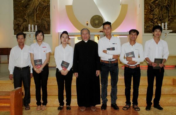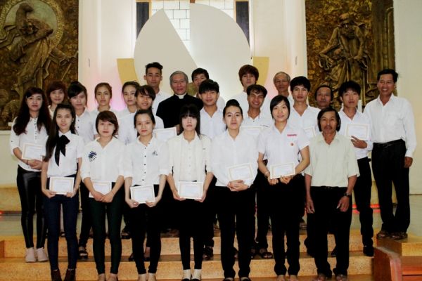 Sau thánh lễ là lễ bế giảng gồm phát thưởng và phát chứng chỉ cho 19 anh chị theo học lớp hôn nhân trong khóa nầy.
