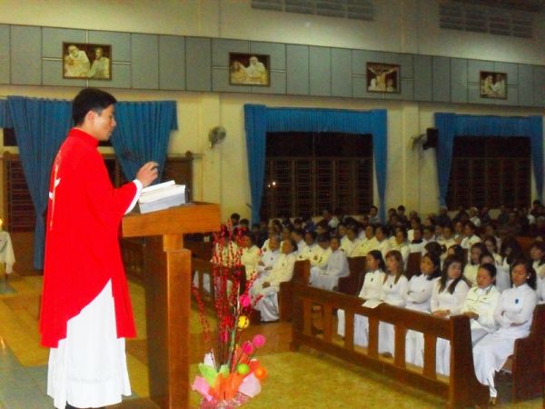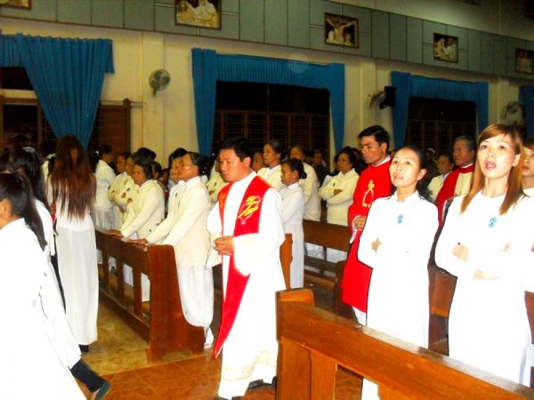 Thánh lễ do cha quản xứ Giuse Trần Thế Thành chủ tế, cùng đồng tế với ngài có 2 cha quê hương G.B Nguyễn Kim Hường và cha Giuse Trần Hữu Hoan.