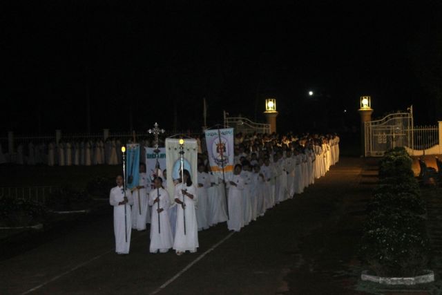 Đoàn rước kiệu thánh nữ Monica do các bà mẹ thực hiện được bắt đầu lúc 4 giờ 45 phút sáng ngày 27 từ hội trường nhà xứ tiến vào nhà thờ.