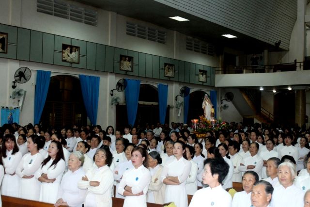 Kết thúc thánh lễ cha quản xứ đã ghi hình lưu niệm với các bà mẹ trước tiền sảnh nhà thờ.
