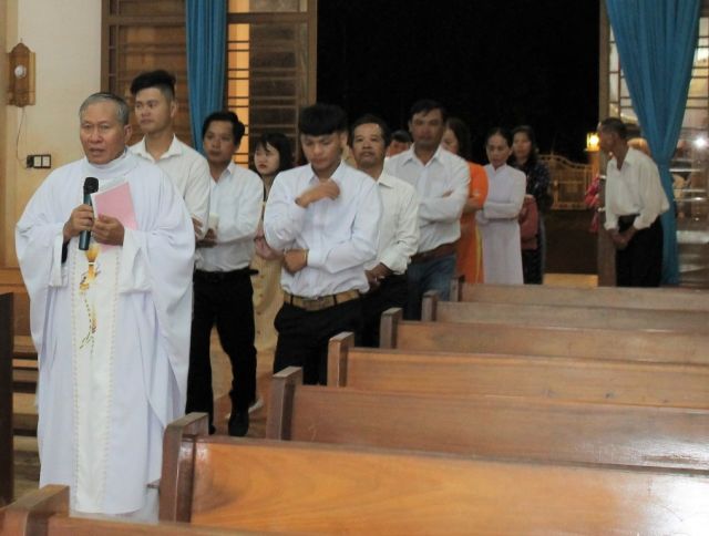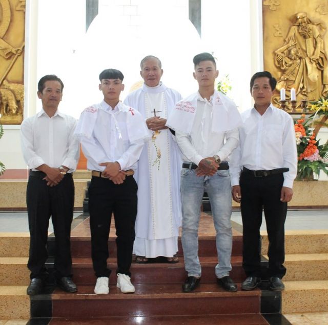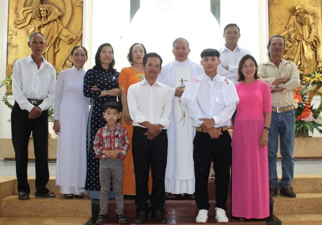 Kết thúc thánh lễ, cha quản xứ đã ghi hình lưu niệm cùng với 2 tân tòng, gia đình và thân nhân của họ.