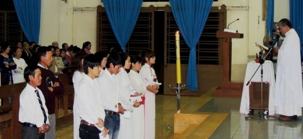 Vào lúc 4 giờ 45 phút ngày 16 tháng 12 năm 2013, thứ hai sau Chúa nhật 3 mùa vọng, trên 300 giáo dân đã tập trung về nhà thờ Giáo xứ để hiệp thông thánh lễ gia nhập Ki-tô giáo cho 5 anh, chị dự tòng, thánh lễ do cha Quản xứ Giu-se chủ sự, cùng đồng tế với ngài có cha G.B Nguyễn Văn Huân SVD về thăm gia đình sau 3 năm truyền giáo tại Paraguay Nam Mỹ.