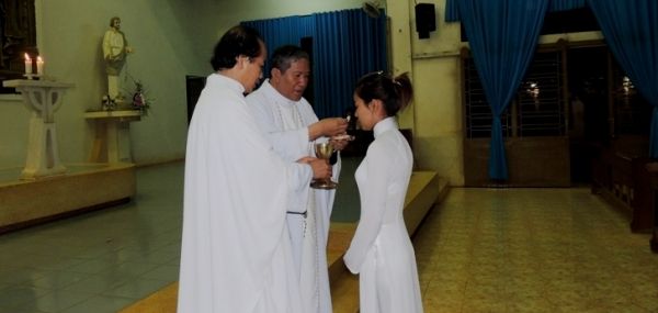 5 anh chị dự tòng hôm nay đã trở thành người ki-tô hữu sau đầy đủ các nghi thức, nghi thức tuyên bố từ bỏ tà thần và tuyên xưng đức tin, chịu Bí Tích Rửa Tội, Bí Tích Thêm Sức và được rước lễ, được thông hiệp và dự phần vào Máu Chúa Ki-Tô.