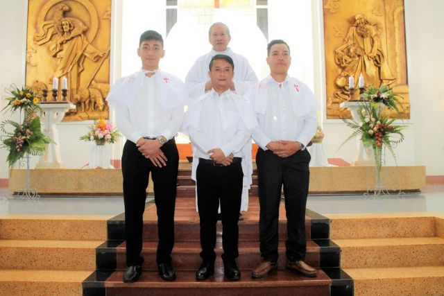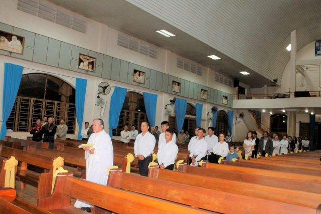 Cha quản xứ Giuse Trần Thế Thành chủ sự Thánh lễ và ban các Bí Tích cho ba dự tòng. Cùng tham dự có bố mẹ đỡ đầu, bố mẹ, anh chị em thân hữu các dự tòng cùng một số giáo dân trong Giáo xứ Thổ Hoàng.