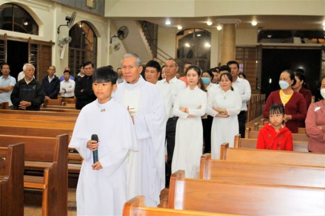 Đúng 4 giờ 45, thứ sáu ngày 21 tháng 10 năm 2022, cha quản xứ Giuse Trần Thế Thành đã cử hành nghi thức tiếp nhận 2 anh chị Dự tòng trước tiền sảnh nhà thờ.
